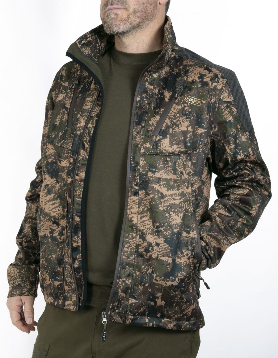Viegla softshell jaka. Trīsslāņu konstrukcija: kluss apvalks, WINDTECH membrāna un tehniskā tīklveida odere. 2 priekšējās kabatas ar rāvējslēdzēju. Krūšu kabata. Pastiprināti pleci. Krāsas: zaļa, Camo Forest/Camo Blaze.